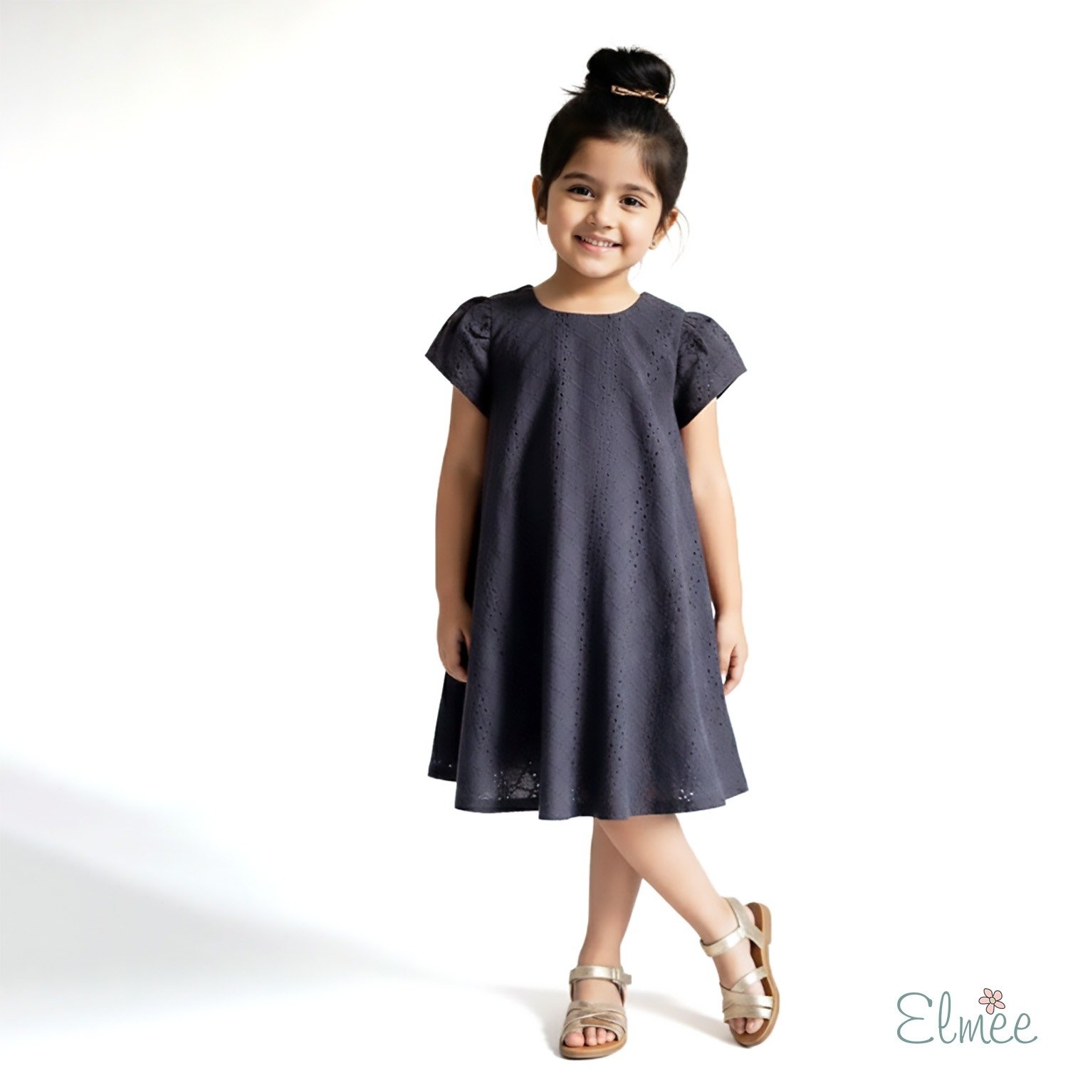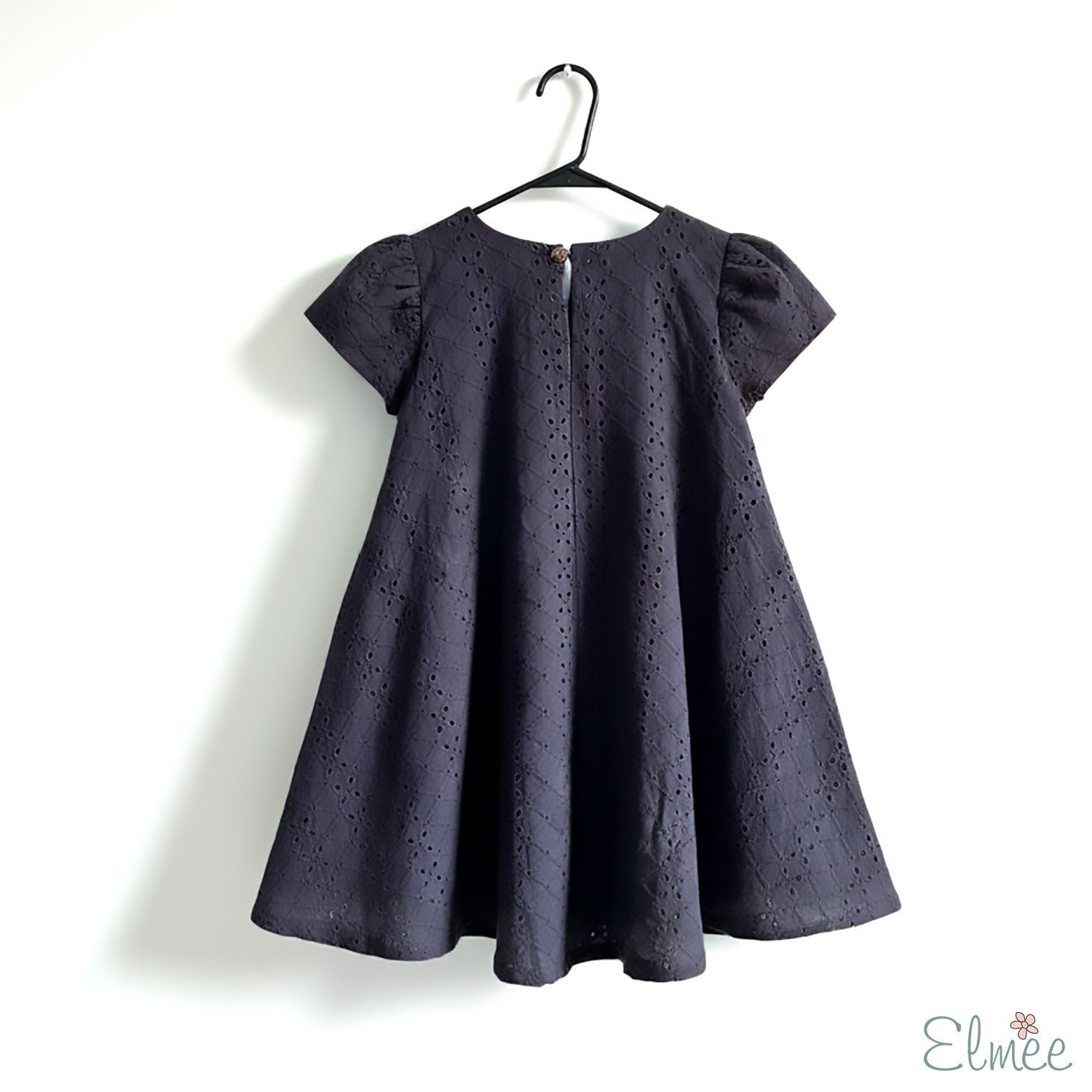 Designed in a relaxed tent silhouette, this dress offers beautiful flow and easy movement, making it perfect for playtime, outings, and special moments alike. The rich black tone adds a touch of classic sophistication, while the delicate cutwork texture brings subtle detail and charm to the look.
