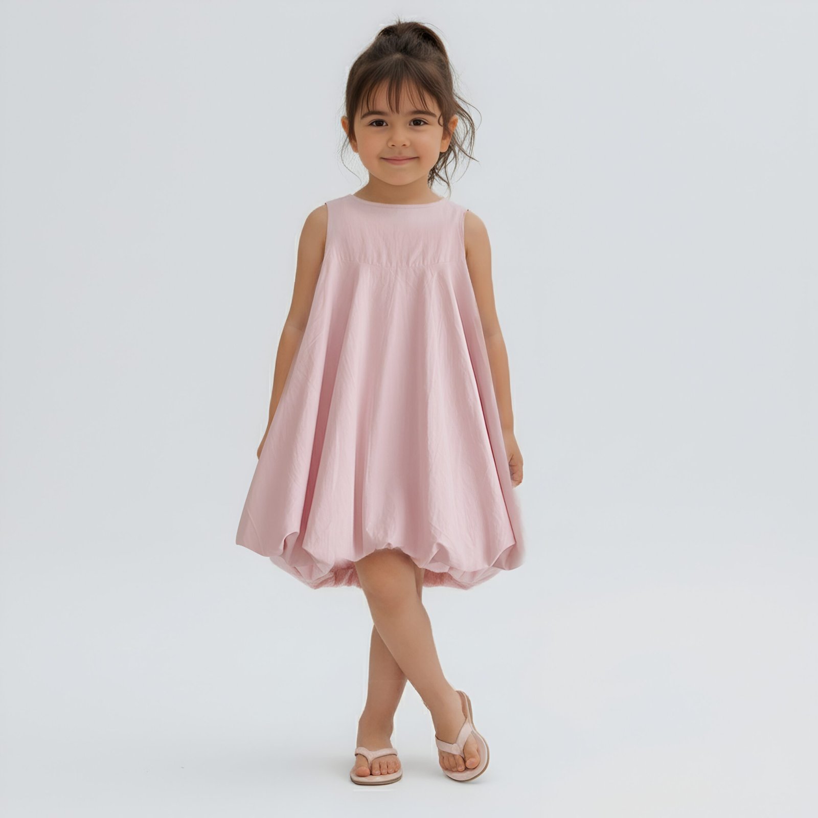 A charming pink balloon dress with a statement back bow – light, playful, and perfect for every little twirl.
