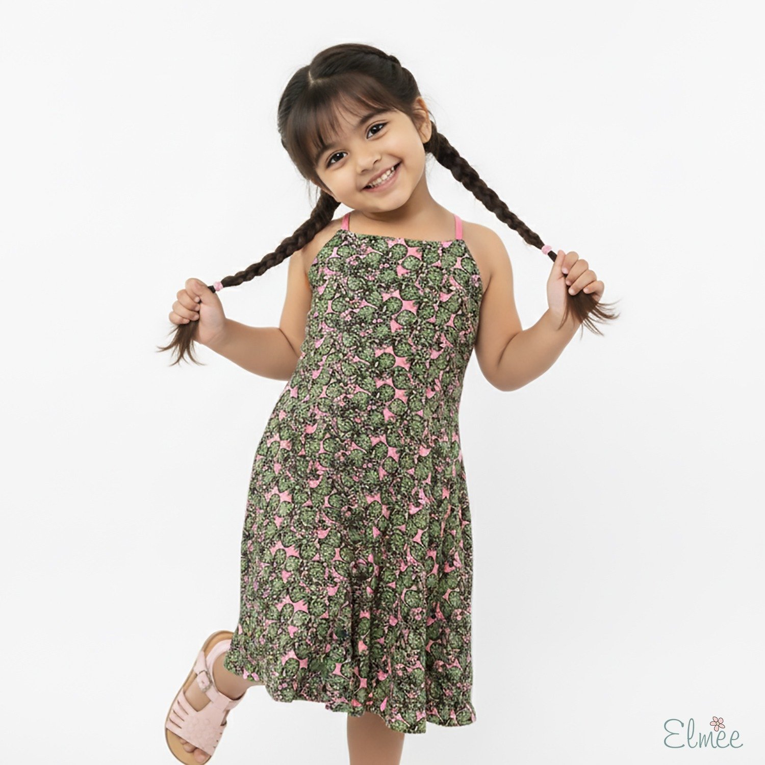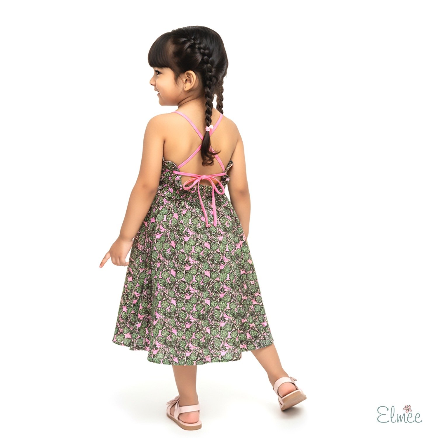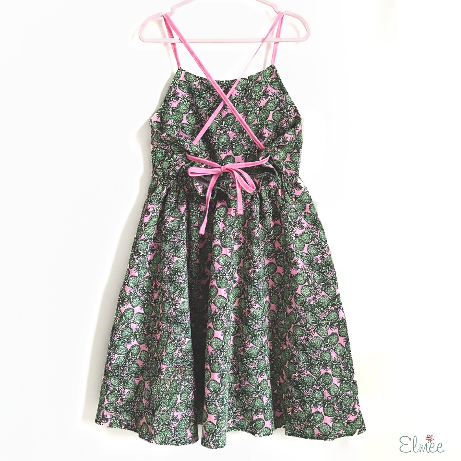 Set on a refreshing green base, the cheerful pineapple-inspired print adds a fun pop of personality, while the delicate pink straps and criss-cross tie-back detail bring a sweet contrast and adjustable fit. Designed to be airy and effortless, this dress is ideal for warm-weather outings, vacations, and everyday adventures.