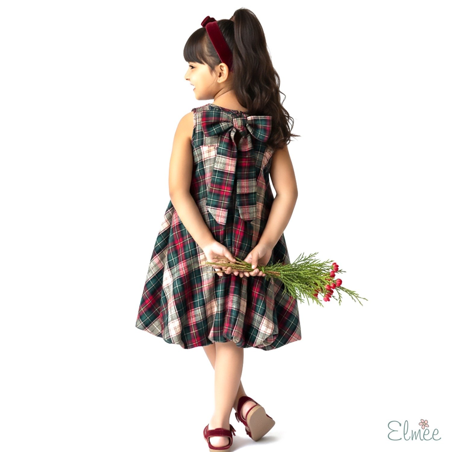 The traditional checks in warm reds and greens create a timeless seasonal look, while the oversized bow at the back adds a delightfully girly surprise — turning every turn into a standout moment. Sleeveless and easy to layer, this dress is perfect for winter festivities and beyond.