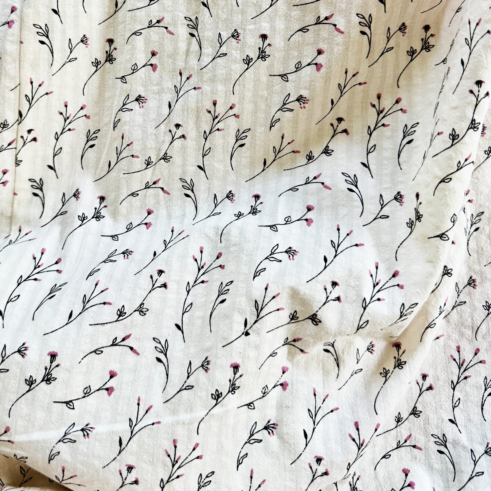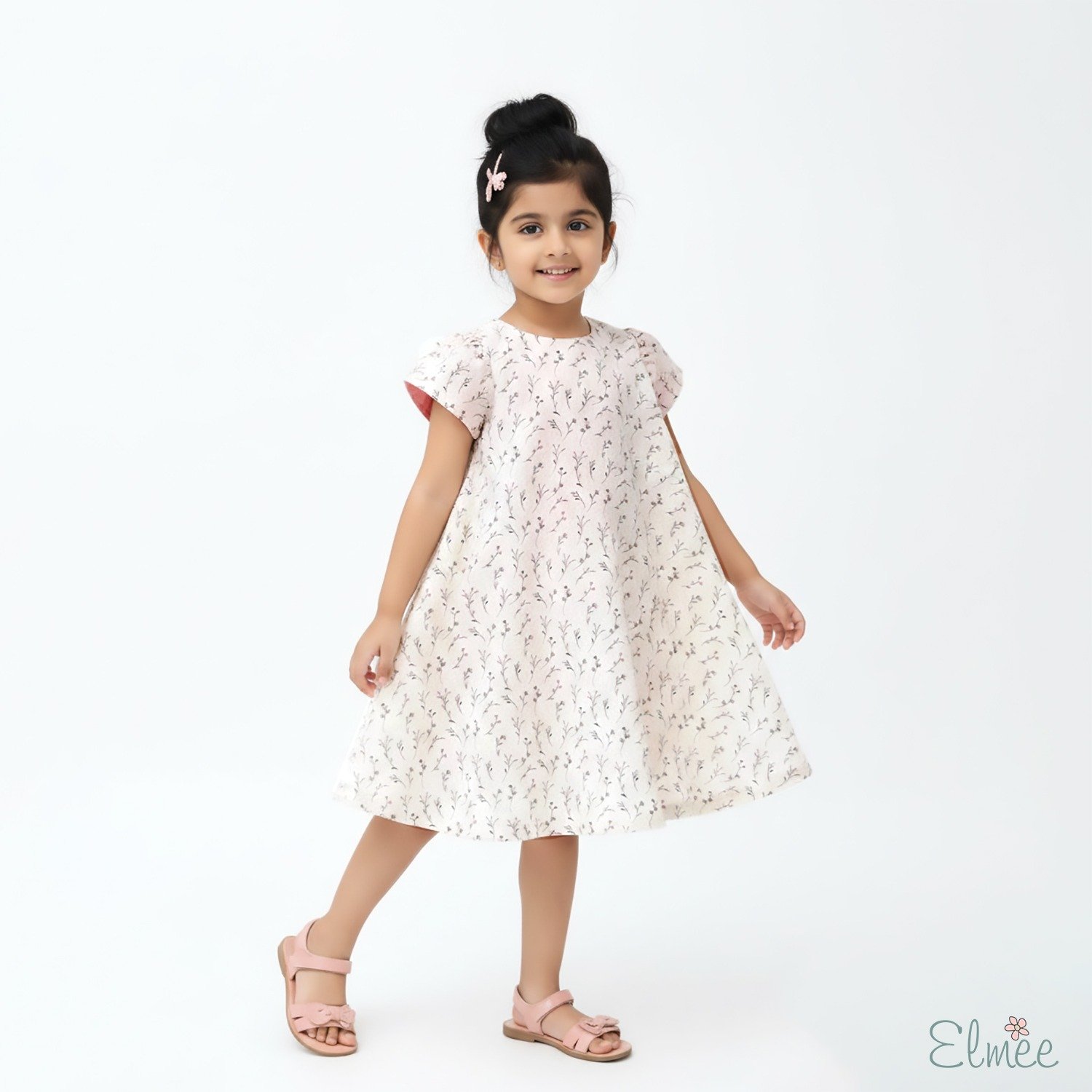 A soft cotton tent dress with delicate sprig prints and a charming pink lining — light, breathable, and beautifully comfortable.